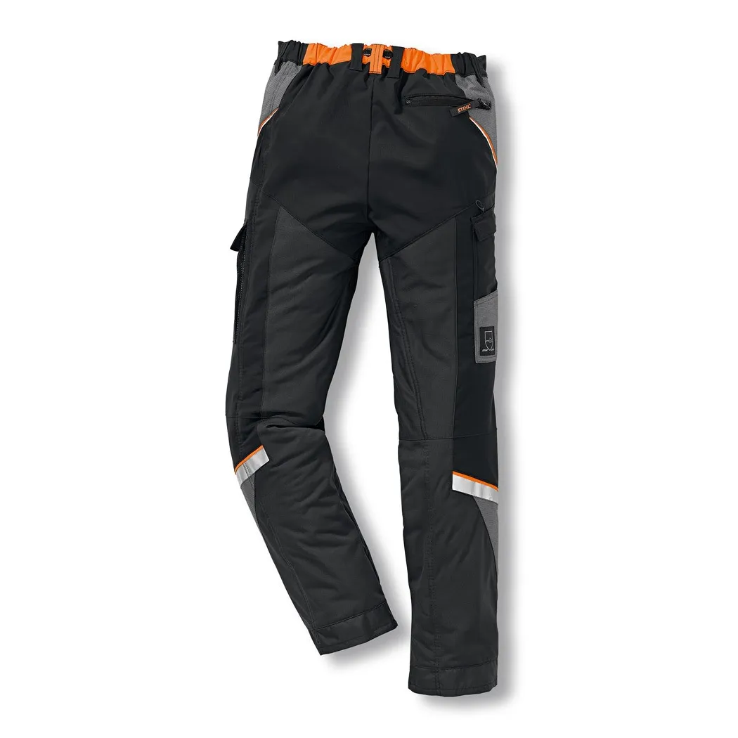 Ultra ľahké, vysoko priedušné nohavice s ochranou proti porezaniu. Vďaka špecálnej, priedušnej tkanine vzadu vhodné aj do horúceho počasia. Farba: čierna s reflexnými prvkami pre lepšiu viditeľnosť. Elastické v rozkroku pre pohodlný pohyb. Vonkajšia tkanina obzvlášť robustná, odolná a priedušná. Praktické vrecká, dlhé zipsy pre pohodlné obliekanie.