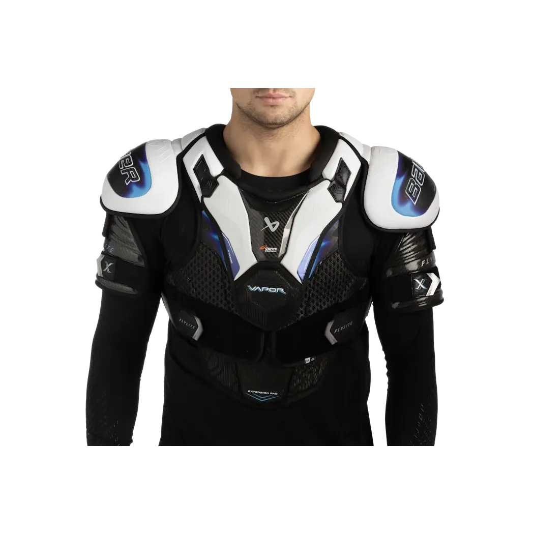 Chrániče ramien BAUER Vapor FLYLITE poskytujú hráčom flexibilitu a ochranu pri zachovaní nízkej hmotnosti. Nízkoprofilové ramenné kryty a plávajúci hrudný kryt umožňujú prirodzený pohyb, čo je ideálne pri rýchlej hre a manévrovaní. Segmentovaný chrbtový panel a bicepsové chrániče ponúkajú stabilitu a ochranu, pričom neobmedzujú pohyb.