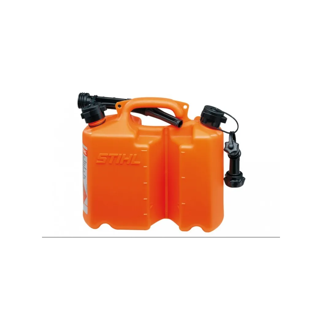 Dvojitá nádržka na 5 l paliva a 3 l reťazového adhézneho oleja. S registráciou UN.