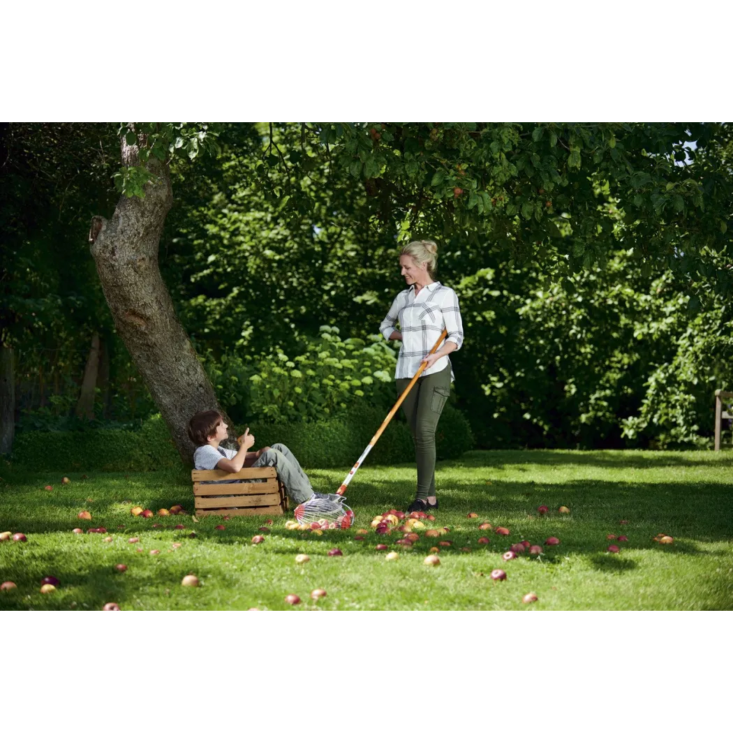 Zberač ovocia Wolf Garten FC-M s veľkým vymeniteľným košom so záberom 30 cm vhodný na zber plodov s priemerom 3,5 – 10 cm. Odporúčaná násada: ZM 140