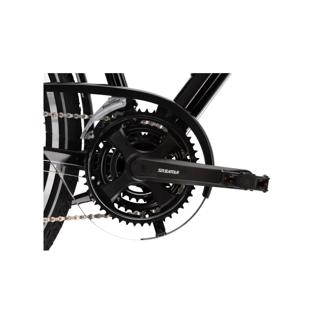 Predná odpružená vidlica SR SUNTOUR M3010 so zdvihom 50 mm tlmí vibrácie a zabezpečuje pohodlie aj na nerovných povrchoch. Bicykel je vybavený V-brzdami SHIMANO EF500, ktoré sú jednoduché na údržbu a zároveň ponúkajú spoľahlivý brzdný výkon.