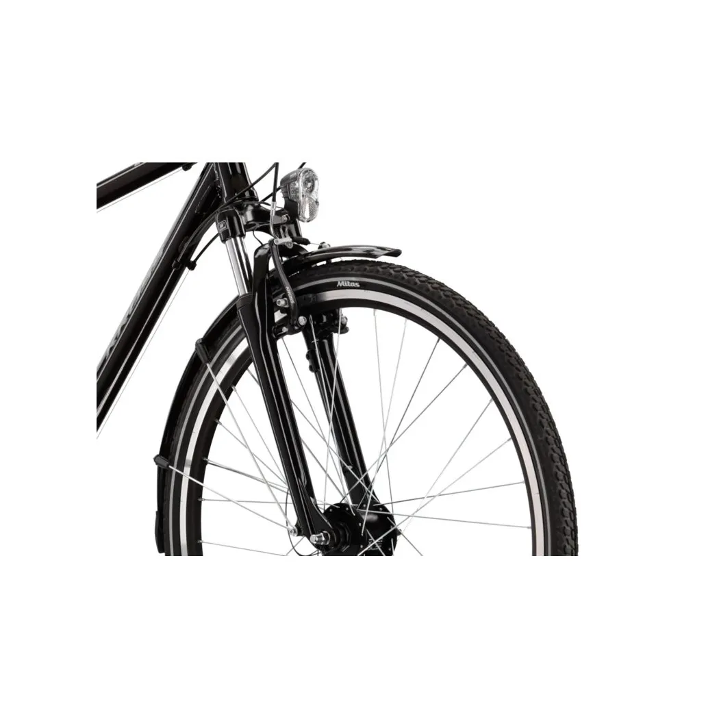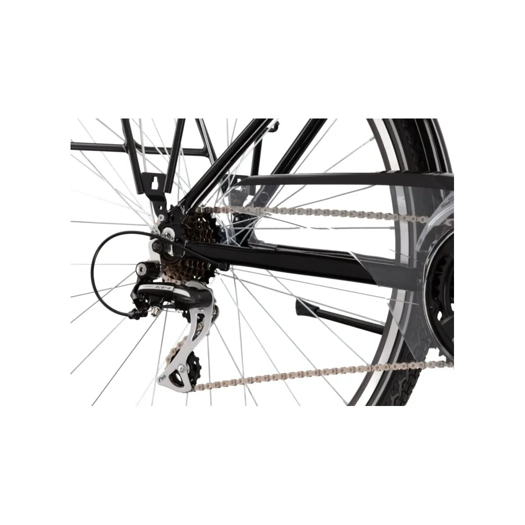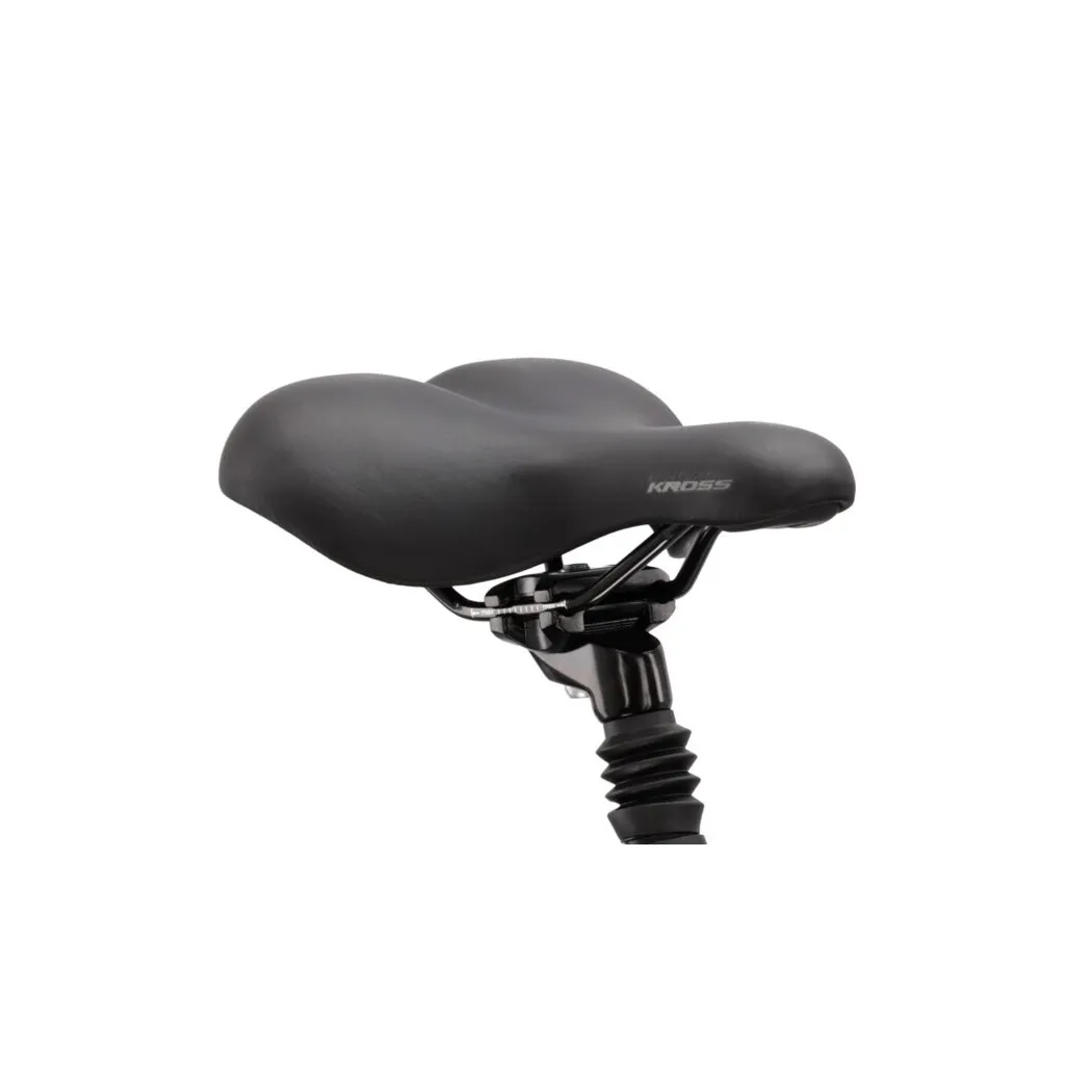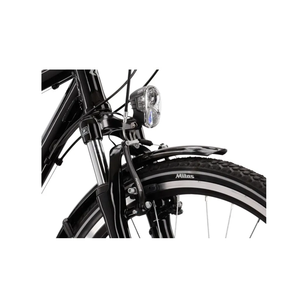 Vďaka náboju SHIMANO NEXUS C3000 vpredu a kvalitným ráfikom KROSS je bicykel pripravený na každodenné používanie. Čierno-šedá lesklá farba mu dodáva elegantný vzhľad, ktorý osloví každého moderného cyklistu.